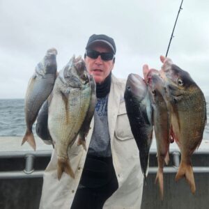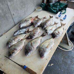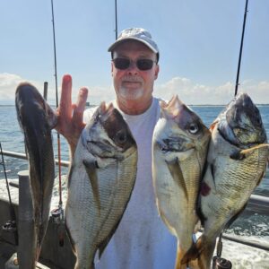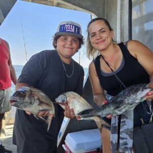 Fishing has been tough the last few days fighting strong current and government waist fishing. We are gettin quality size on the Porgies and plenty of Seabass to keep one. Also a few Fluke, Triggerfish and Blues in the mix. Sailing EVERYDAY 7:30 am. Come on down